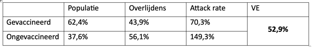Met deze cijfers wordt de indruk gewekt dat zelfs een niet-werkend vaccin nog een bescherming van meer dat 50% zou geven.