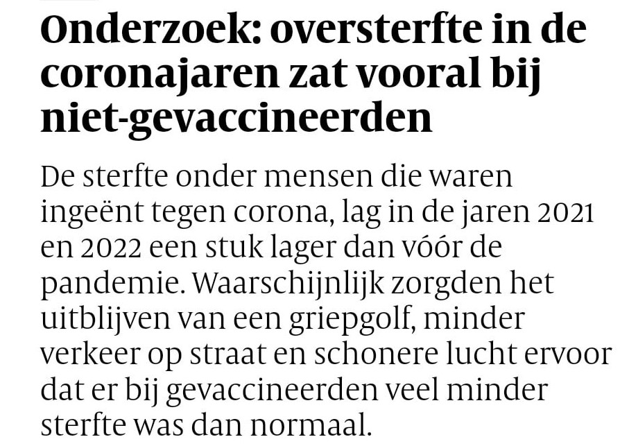 Op 2 september 2024 bracht het Nivel een rapport uit (gesubsidieerd door ZonMW), waaruit zou blijken dat de oversterfte zat bij de ongevaccineerden enLees meer...