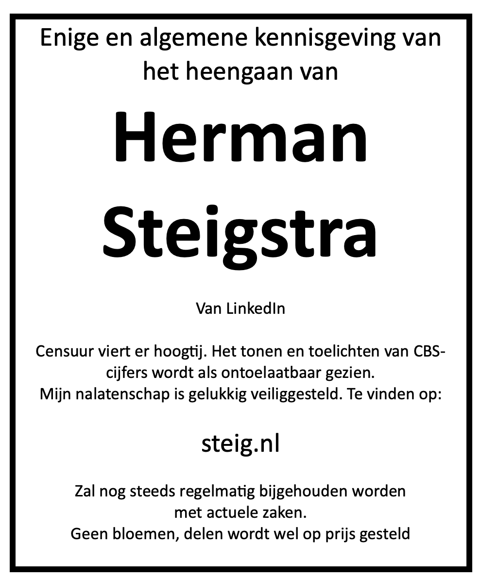 Gisteren werd mijn laatste bijdrage opnieuw verwijderd door LinkedIn. Inmiddels nu definitief geblokkeerd.Lees meer...